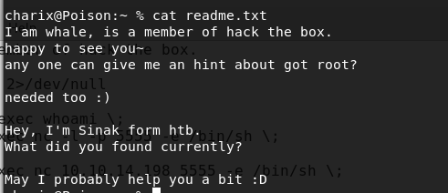 FreeBSD Poison 11.1-RELEASE FreeBSD 11.1-RELEASE #0 r321309: Fri Jul 21 02:08:28 UTC 2017 root@releng2.nyi.freebsd.org:/usr/obj/usr/src/sys/GENERIC amd64nc -l 999——-> nc: Permission deniedTrying(SUID提权,参考)。
