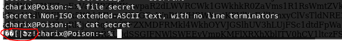 /home/charix目录下有三个文件,一个flag;一个secret,是空文件;还有一个secret.zip。