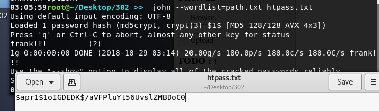 当我尝试$apr1$1oIGDEDK$/aVFPluYt56UvslZMBDoC0作为口令登陆失败,我意识到这可能是一个路径,而不是口令。
