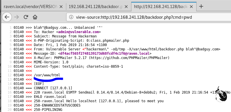 http://raven.local/vendor/security.md 暗示了phpmailer插件版本漏洞