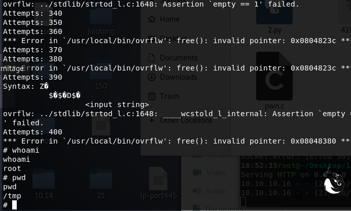 总结 编写python脚本,利用段错误,通过缓冲区溢出得到root权限,需要很多基础,不是一时半会儿能学会的。继续加油吧