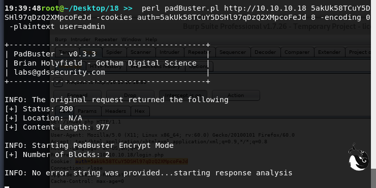 padBuster.pl Use: padBuster.pl URL EncryptedSample BlockSize [options]