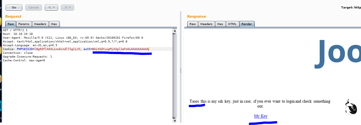 数据包 1 2 3 4 5 6 7 8 9 10 11 12 13 14 15 16 17 GET / HTTP/1.1 Host : 10.10.10.18 User -Agent: Mozilla/5 .0 (X11; Linux x86_64; rv:60 .0 ) Gecko/20100101 Firefox/60 .0 Accept : text/html,application/xhtml+xml,application/xml;q=0 .9 ,*/*;q=0 .8 Accept -Language: en-US,en;q=0 .5 Cookie : PHPSESSID=l8g93fl443iinu6cndl71g1ic5; auth=zZs1CucXwORHrUD2uEkfi7HKtO4MqN0eConnection : closeUpgrade -Insecure-Requests: 1 Cache -Control: max-age=0