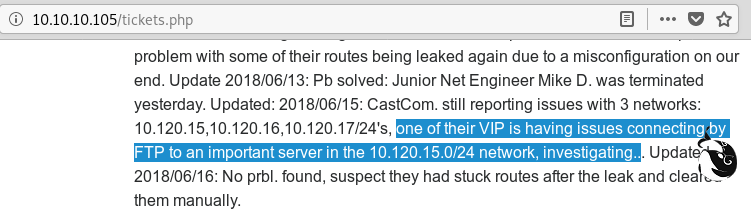 1 2 3 4 5 6 7 8 9 10 11 12 13 14 15 16 17 18 19 20 21 22 23 24 25 26 27 28 29 30 31 32 33 34 35 36 37 38 39 40 41 42 43 网关ip:10.99.64.1 目标机的ip: 10.99 .64 .2 ,10.78.10.1,10.78.11.1 --- root@r1:~# netstat -an netstat -an | grep 22 tcp 0 0 0.0 .0 .0 :22 0.0 .0 .0 :* LISTEN tcp 0 0 10.99 .64 .2 :22 10.99 .64 .251 :42676 ESTABLISHED tcp 0 0 10.99 .64 .2 :22 10.99 .64 .251 :48050 ESTABLISHED tcp 0 192 10.99 .64 .2 :51982 10.10 .14 .7 :9900 ESTABLISHED tcp 0 10.99 .64 .2 :22 10.99 .64 .251 :48050 ESTABLISHED 发现本地IP,通过9900端口和目标机10.99.64.2,建立连接 --- nc -nvz 10.99 .64 .251 1 -100 22 ,80 open wget http://10.99.64.251,确认该内网ip,就是ip-10.10.10.105 --- ssh 10.99 .64 .251 Permission denied (publickey). 不允许登陆 ssh root@10.99.64.251 --- eth0网关 ping -c 4 10.99 .64 .1 nc -nvz 10.99 .64 .1 1 -100 Connection to 10.99 .64 .1 21 port [tcp/* ] succeeded! Connection to 10.99 .64 .1 22 port [tcp/* ] succeeded! Connection to 10.99 .64 .1 53 port [tcp/* ] succeeded! ssh 10.99 .64 .1 ftp 10.99 .64 .1 ,匿名登陆成功,目录为/,无任何文件,不可写 --- nc -nvz 10.78 .10 .2 1 -100 可能是eth1网段网关 22 open nc -nvz 10.78 .11 .2 1 -100 eth2网关 22 open ssh 10.78 .10 .2 ssh 10.78 .11 .2