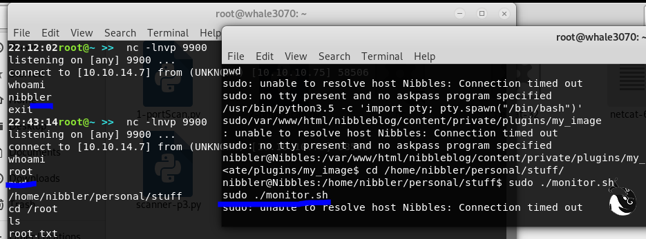 运行sudo ./monitor.sh后,本地即可从nibbler到root