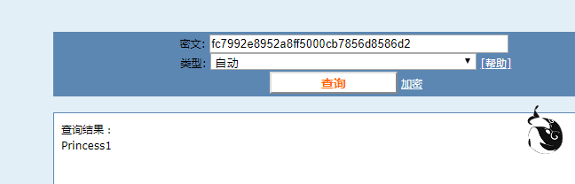 在线解密结果:Princess1