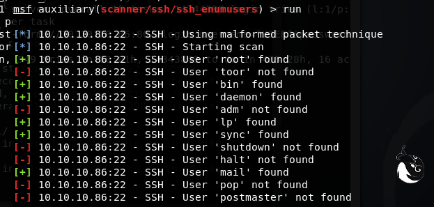 再次ssh扫描可用用户 msfconsole use scanner/ssh/ssh_enumusersset RHOSTS set /root//10.10 .10 .86 /