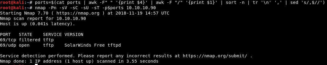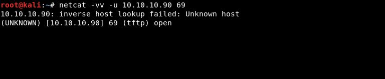 Nmap工具的扫描结果表明UDP 69端口(TFTP)正在运行,这是使用netcat验证的。