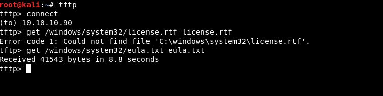 TFTP 的 binary(二进制)传输模式是可用的,在MOF文件被上传到 “c:\windows\system32\wbem\mof ”之前,该MOF文件需要先上传到“c:\windows\system32”。