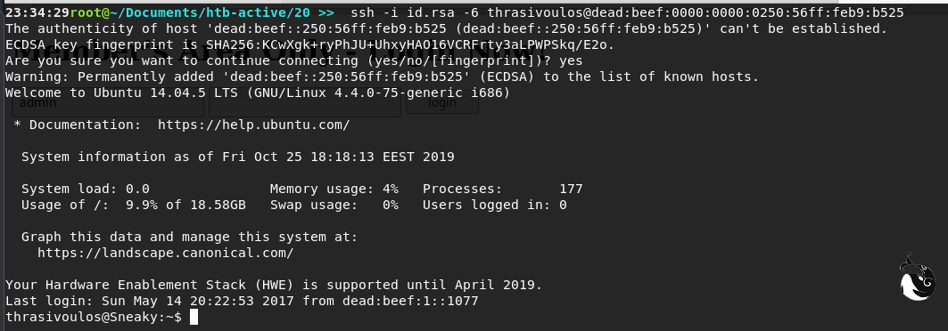 ssh -i id.rsa -6 thrasivoulos@dead:beef:0000:0000:0250:56ff:feb9:d82f