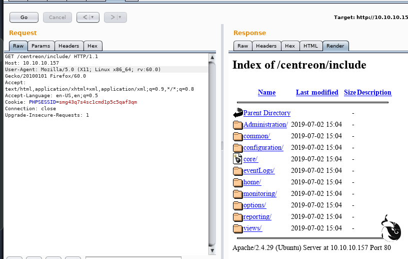 - http://10.10.10.157/centreon/a.php (CODE:200|SIZE:1)