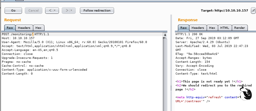 - http://10.10.10.157/centreon/main.php (CODE:302|SIZE:0)