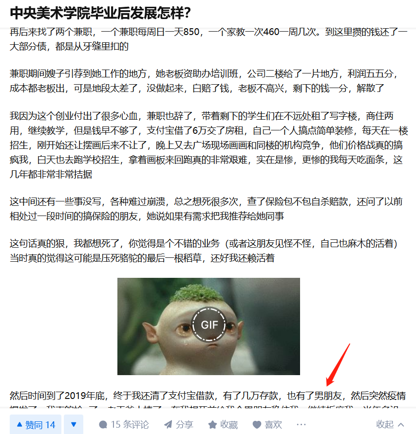 女生还好,自带性价值和生育价值。男生学艺术,尤其是自身阶级不高的男性,又学了无法赚钱的纯艺,那真的是死局。