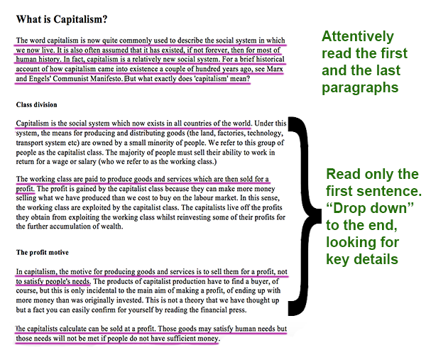 你已经遇到过略读:当你阅读一本书的长章,或者研究一篇长文时。