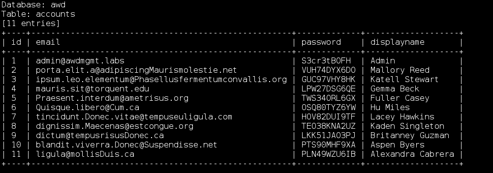 既然我们知道了一个易受攻击的注入点,让我们使用 sqlmap 来利用它并从应用程序数据库中检索所有数据: