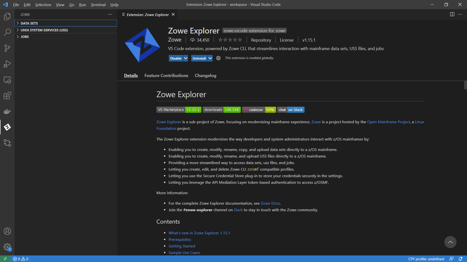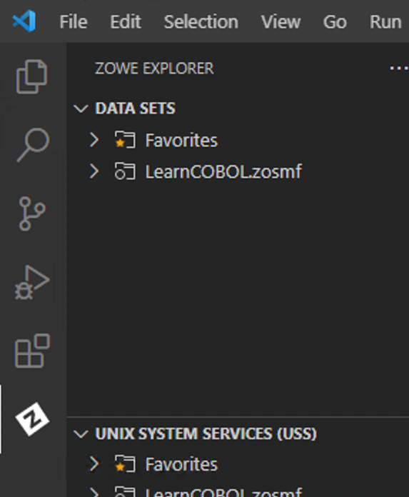 zowe.config.json和zowe.schema.json) 从 LearnCOBOL 文件夹移动到 Zowe 的全局位置。默认情况下,Windows 为C:\Users\%USERNAME%\.zowe,Linux 和 macOS 为~/.zowe。以下网址是另一份优秀的文档,描述了上述 VS Code 和 Zowe Explorer 的详细信息和示例:https://marketplace.visualstudio.com/items?itemName=Zowe.vscode-extension-for-zowe