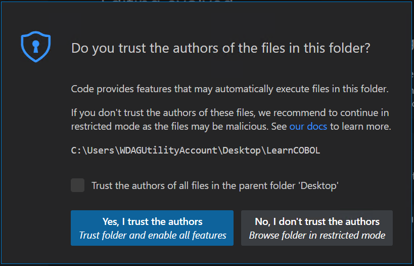如果提示信任文件夹中的文件的作者如图 7b 所示,请选择 是,我信任作者。