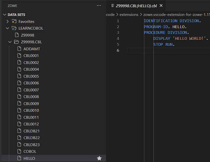 在这些练习中,您只需要使用 COBOL 语言支持和 Zowe Explorer 扩展。