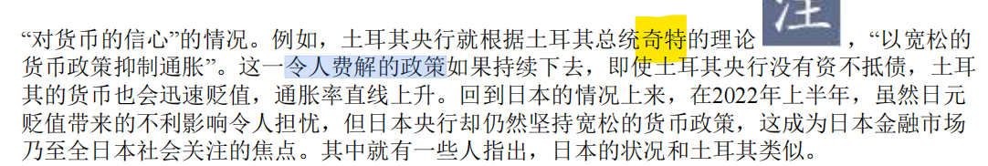 在《汇率下跌之后:日元贬值的宏观经济启示》这本书中,作者提到了土耳其总统埃尔多安,使用了“奇特”,“令人费解“这些词。这些都是文化人用来骂人的话。