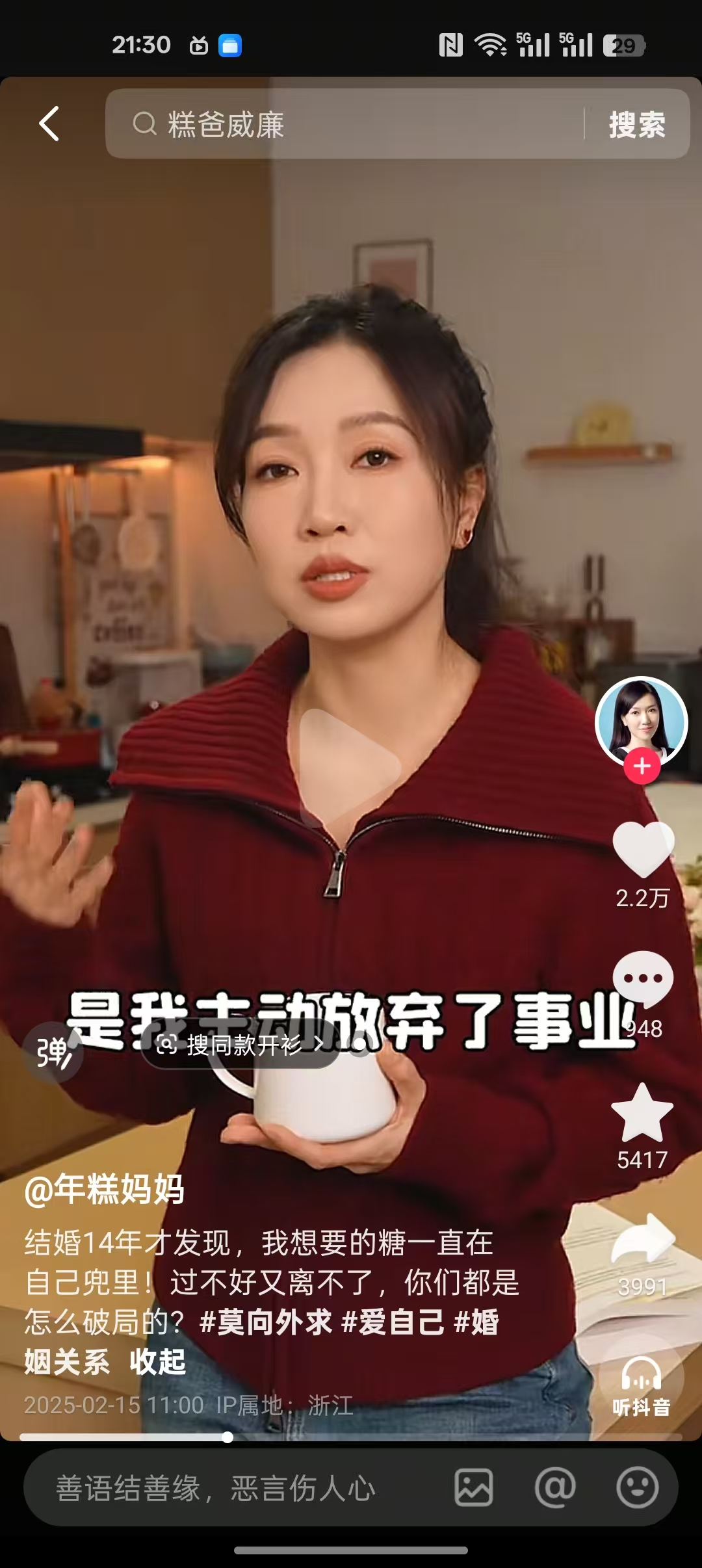 在短视频平台,我看到了一个三个孩子的妈妈。 她的ID是”年糕妈妈“,她有三个孩子。