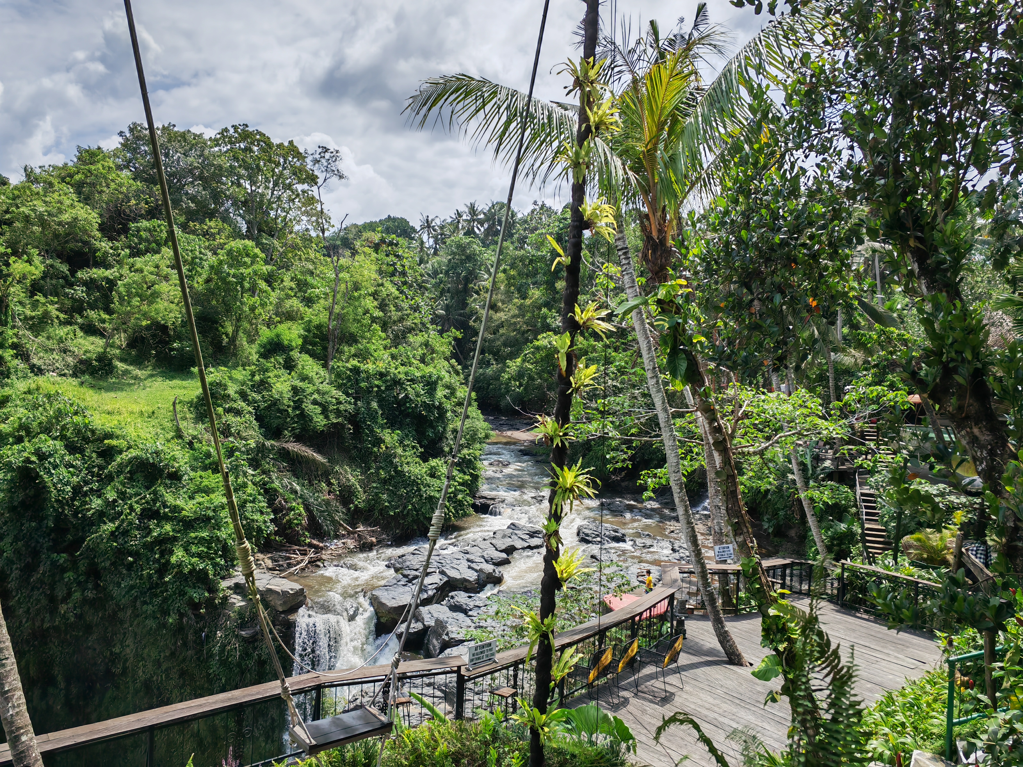 瀑布旁边有一个高空秋千的项目。