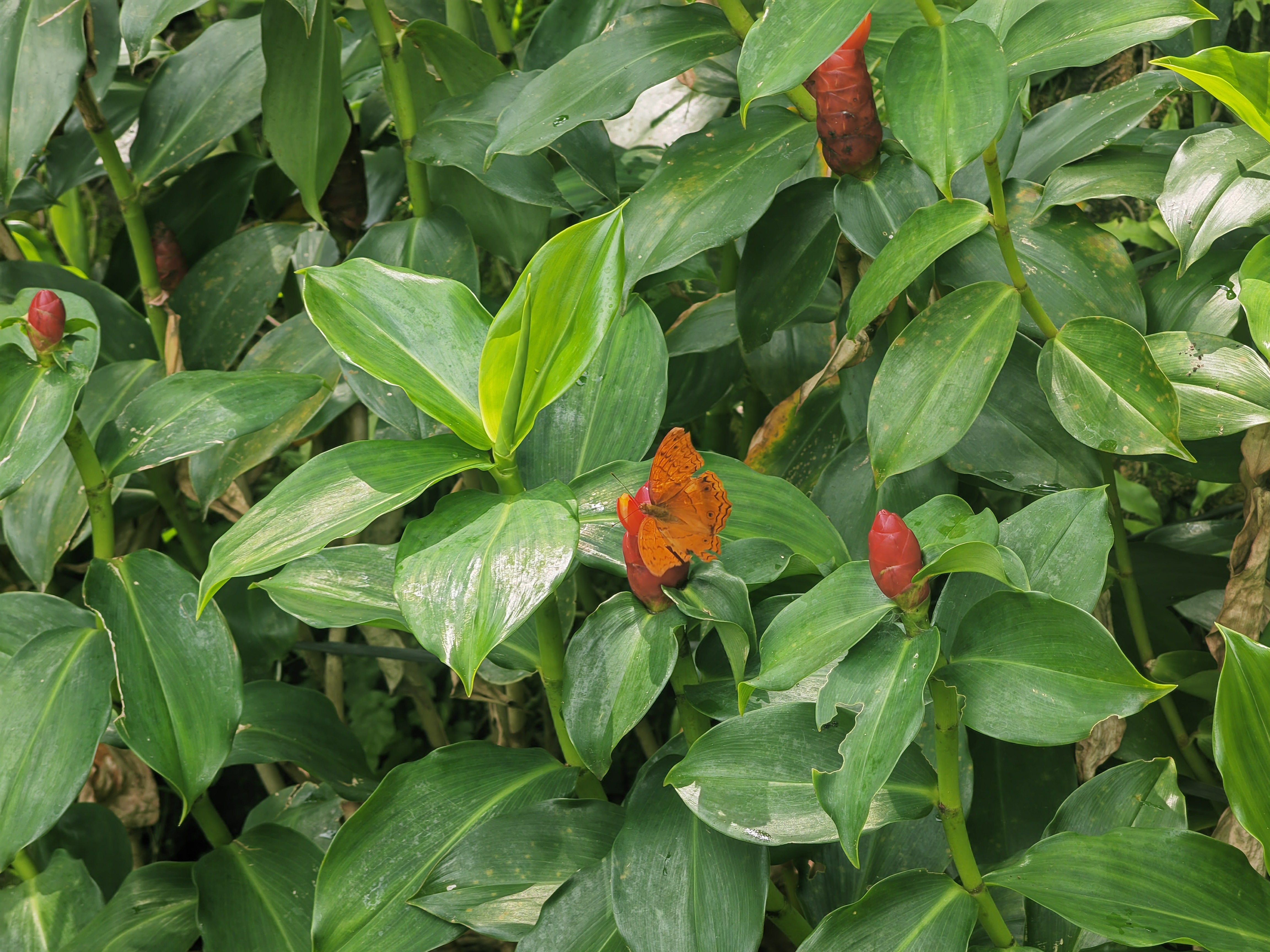 巴厘岛有一种神奇的不知名植物,是红色的柱状物,一捏就流透明的液体,然后还有蝴蝶被吸引过来。
