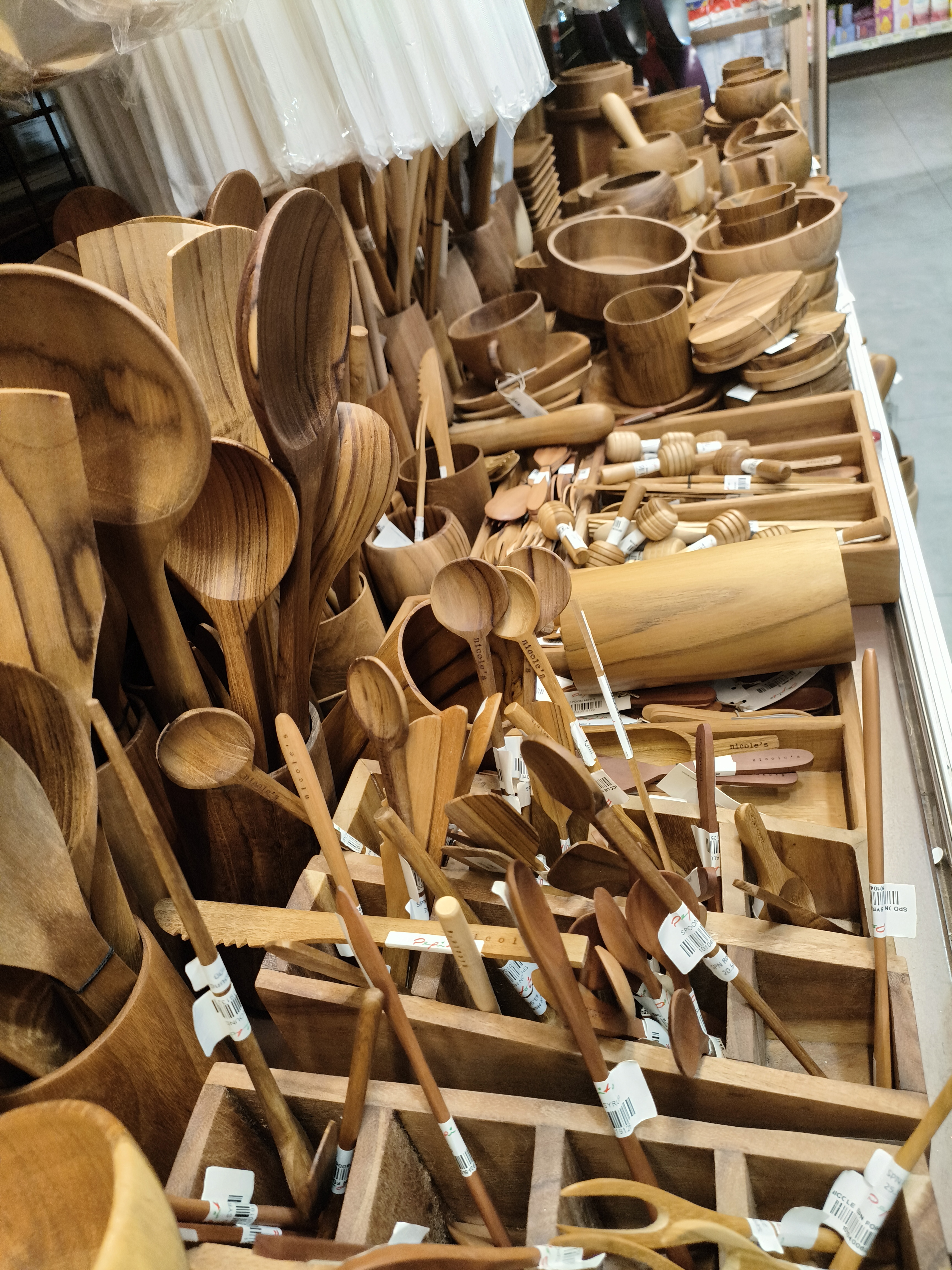 晚饭后去商圈里面的超市逛了逛,从没见过木制的餐具。