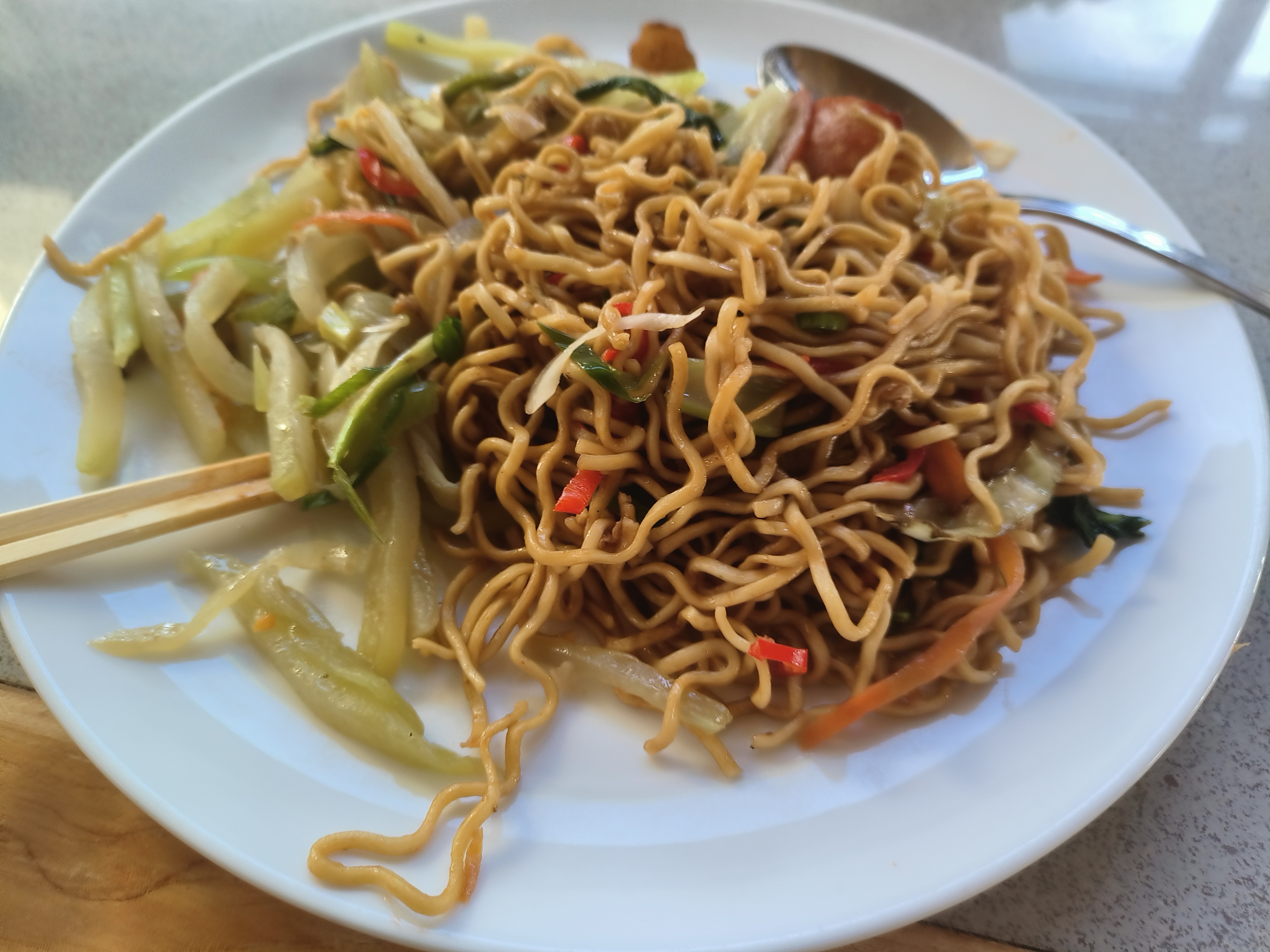 自助餐品种很多,炒面用一个字形容就是“咸”