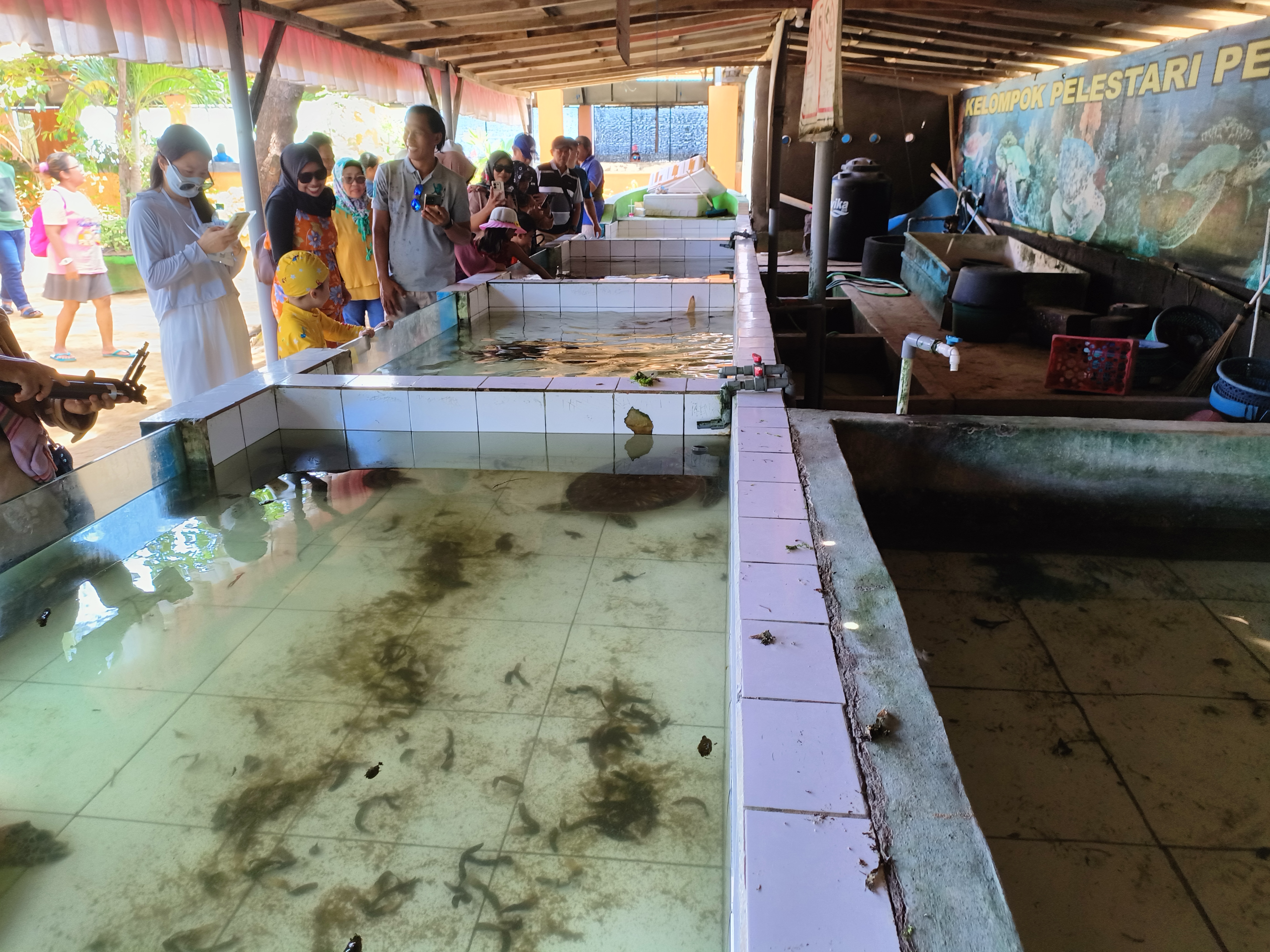 我还以为海龟是野生的,没想到是圈养的。除了海龟之外,还有很多圈养起来的动物。