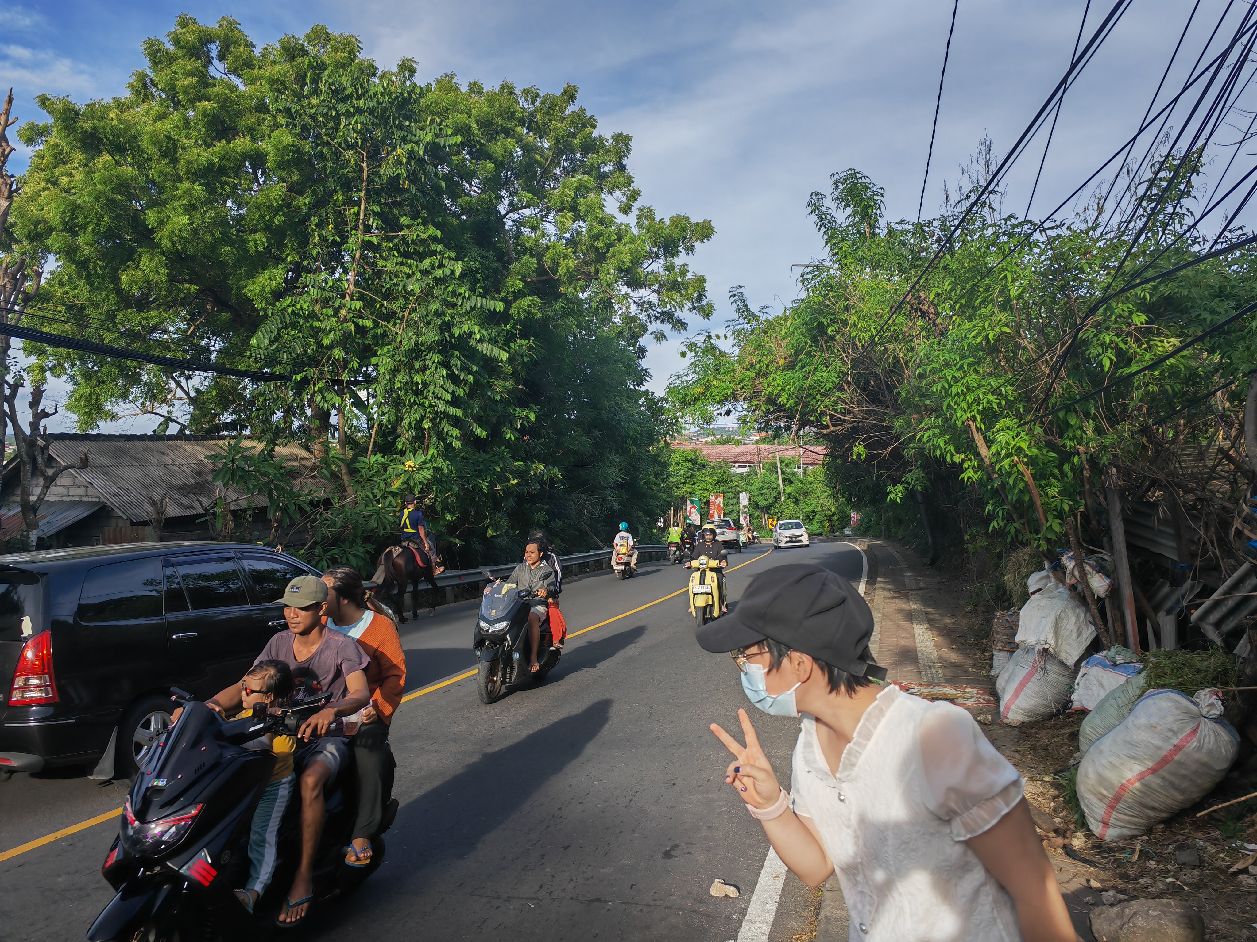 巴厘岛的路很窄、路上到处都是骑着摩托车的印尼人。 要小心被抢手机、抢包。