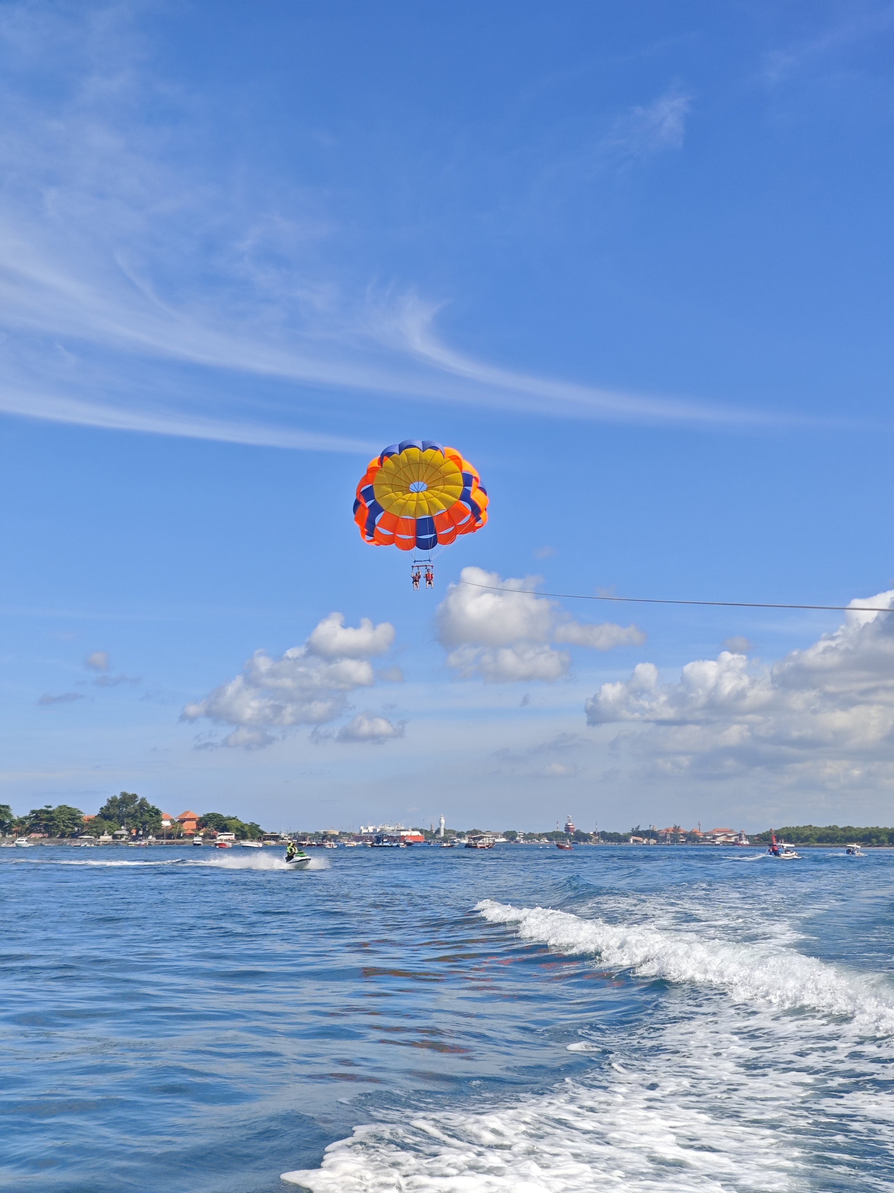 滑翔伞是用船拉着,船速快飞的就高,船速慢就会慢慢降低。最后用绳子拉回来即可完成降落。