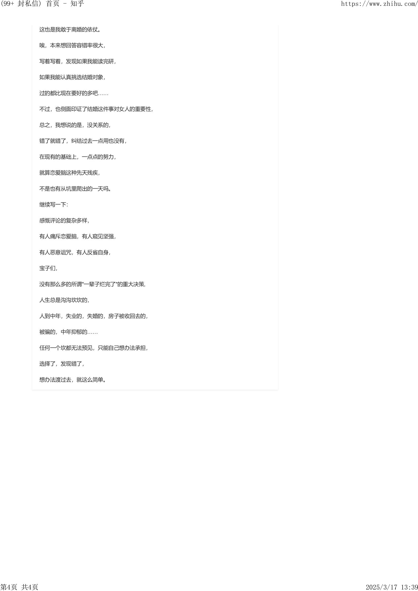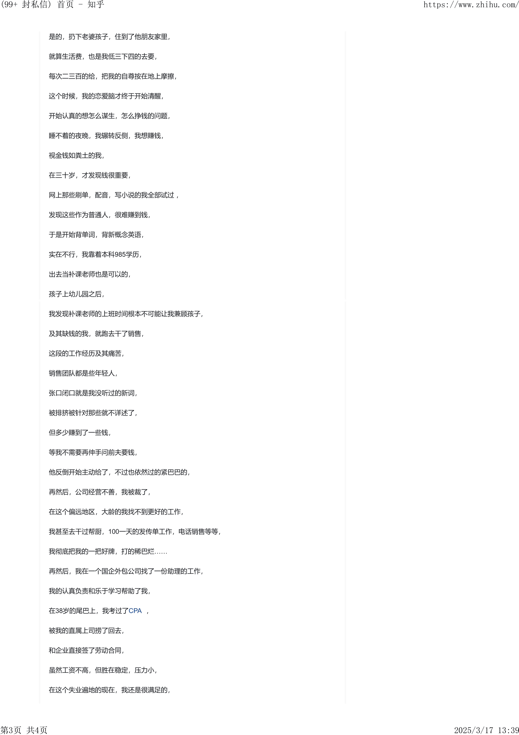 - 婚育歧视 + 生育成本 + 家庭责任,这些都会压缩婚女自己的现金流和财富积累能力。