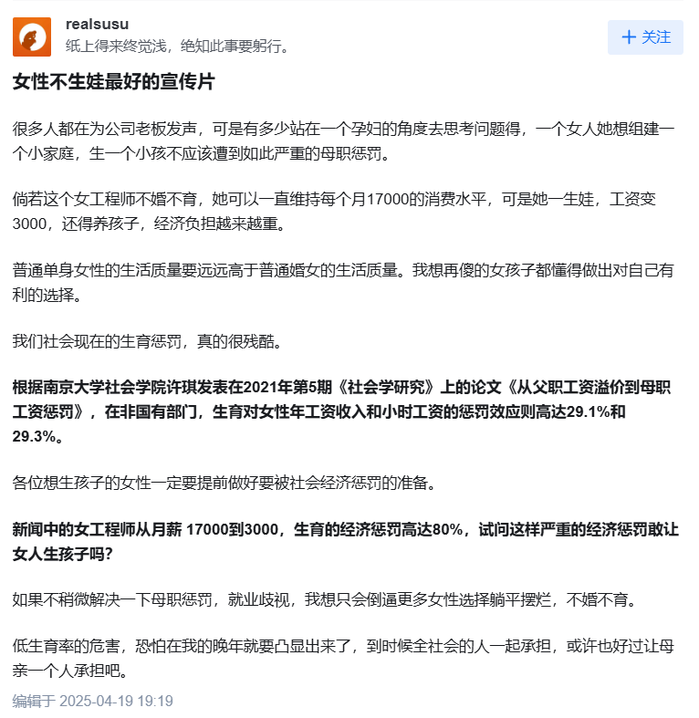 - 产假之后,很多公司因怕“二胎/三胎风险”不愿意雇佣,或者安排边缘岗位。