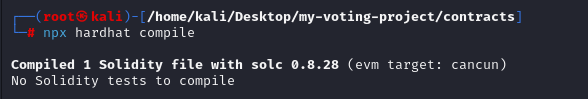 - 编译合约:使用以下命令编译合约,确保没有错误:编译成功后,你会看到