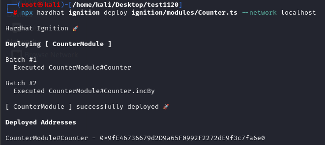 npx hardhat ignition deploy ignition/modules/Counter.ts --network localhost 这个命令是使用 Hardhat Ignition 来部署合约,这是 Hardhat 的一个新的部署系统。